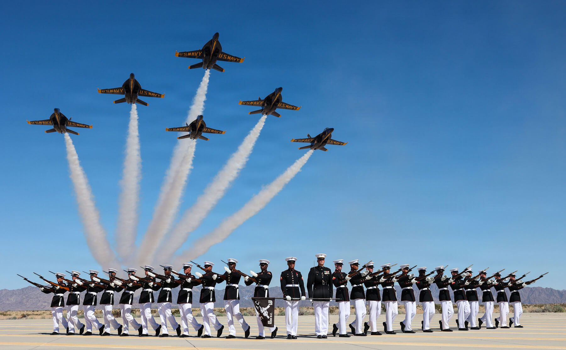 Feel the ground shake as the Corps' finest aircrafts, from the cutting-edge F-35B to the powerful CH-53K, bring an explosive demonstration of air superiority.