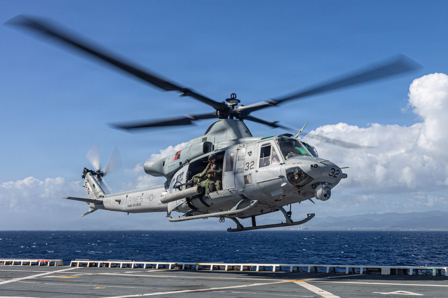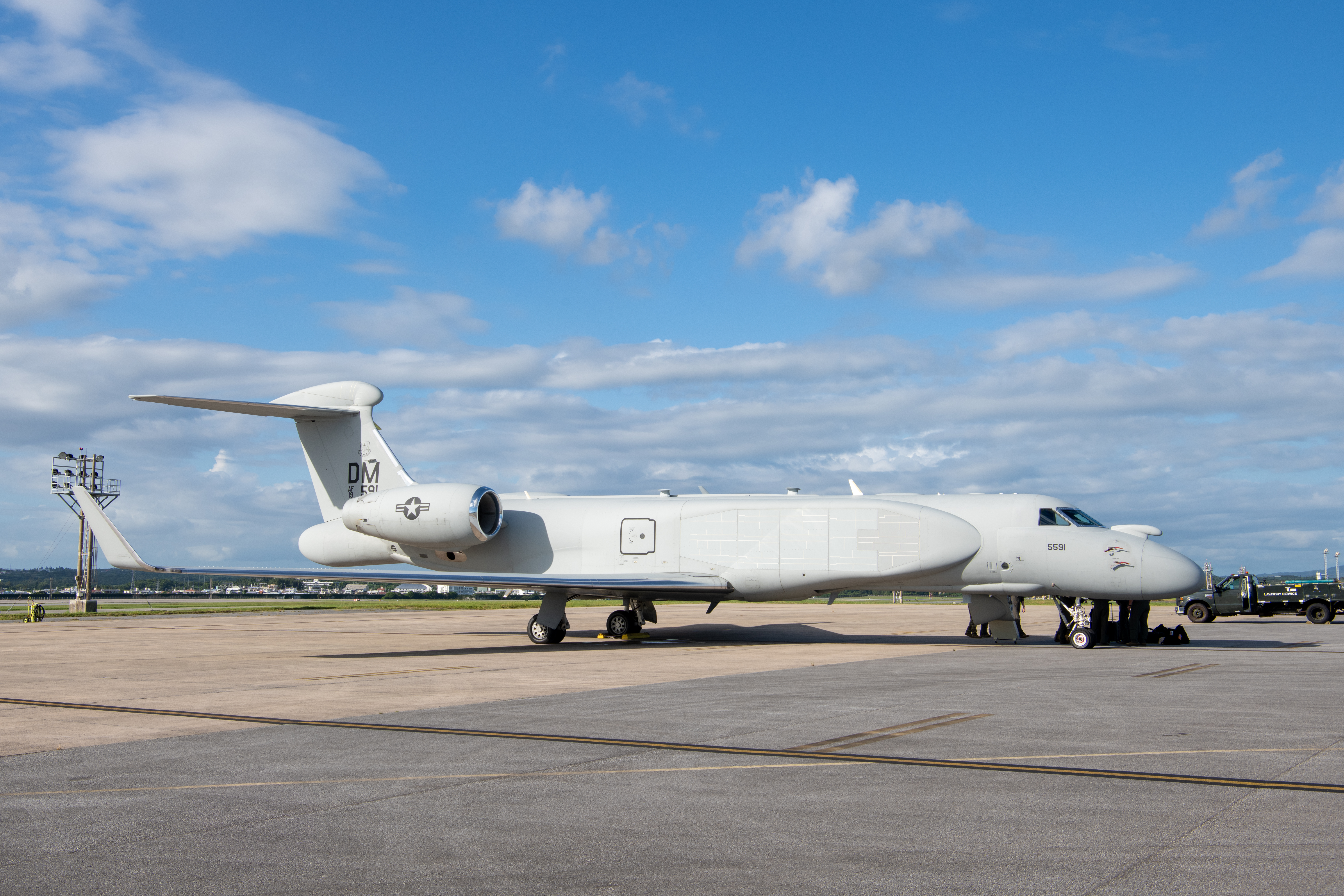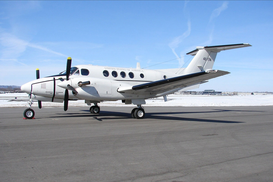 The Huron is a low-wing, T-tail monoplane with two turboprop engines. The UC-12F provides high-priority transportation for personnel and cargo, range clearance, courier flights, medical evacuation, and humanitarian rescue or assistance.